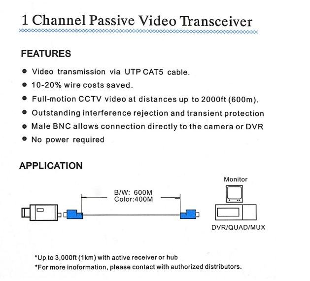 AHD/CVI/TVI/HD/Analog Video Passive UTP Balun